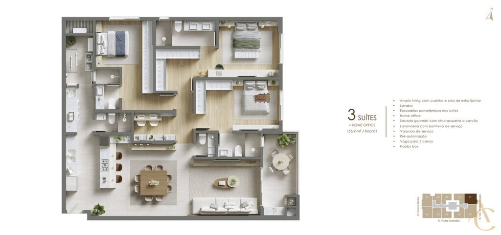 O empreendimento combina segurança avançada e automação para uma experiência incomparável. Próximo a parques, escolas e comércio, é a escolha ideal para quem busca conforto, estilo e qualidade de vida em uma localização privilegiada.