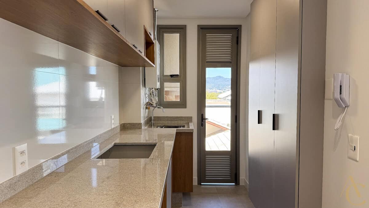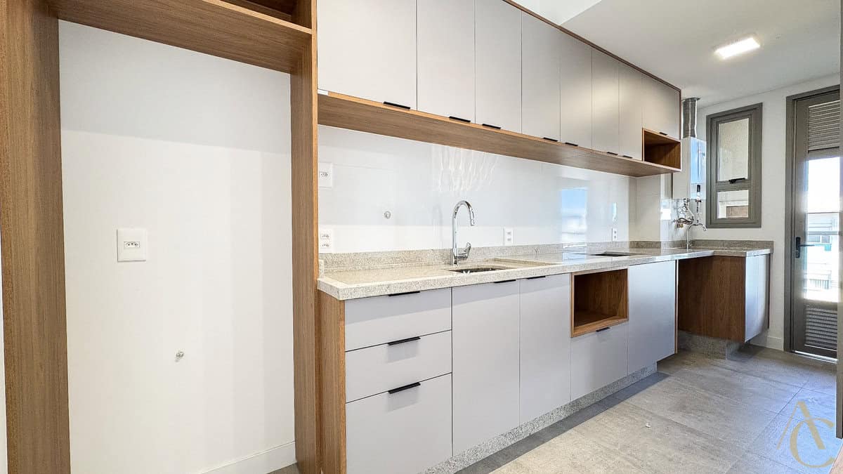 O apartamento possui móveis planejados de excelente qualidade na cozinha e na área de serviço, otimizando os espaços com elegância e funcionalidade. Os ambientes são arejados e muito bem iluminados, com acabamentos de alto padrão.