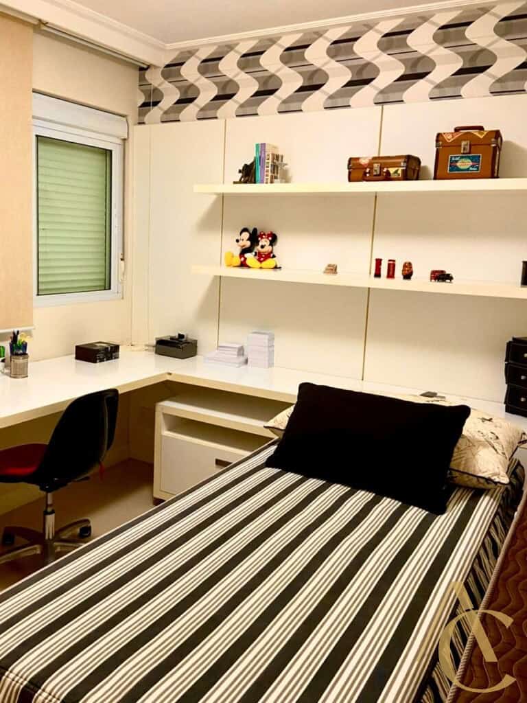 A unidade possui ainda cozinha independente, área de serviço e 2 vagas de garagem.