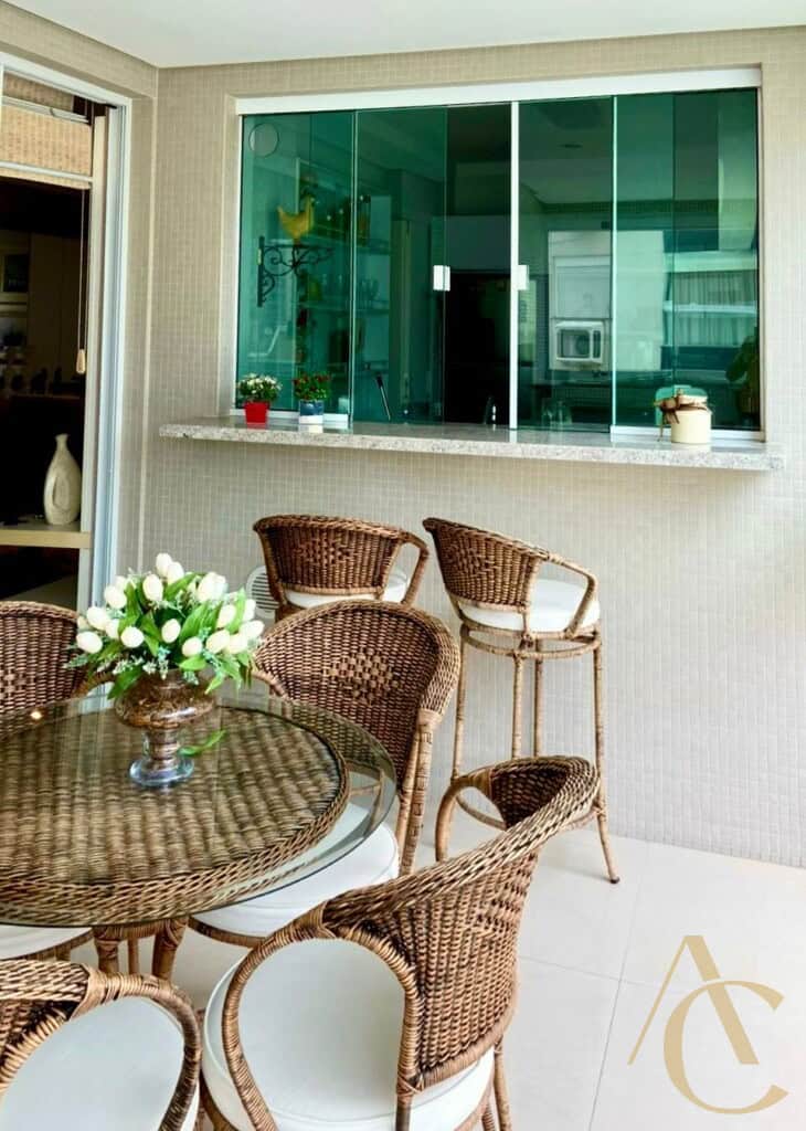 São 2 suítes (sendo uma master), 1 banheiro auxiliar, sala de estar e jantar integradas, além de uma sacada com churrasqueira a carvão, ideal para momentos de convivência e relaxamento.