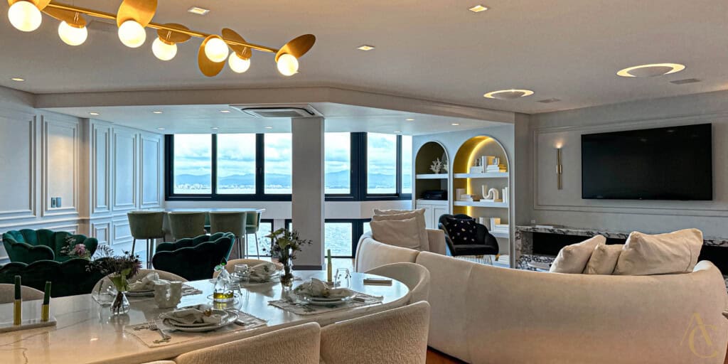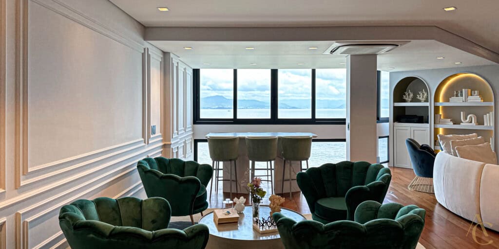 “Este é o seu convite para viver em um dos endereços mais exclusivos de Florianópolis. Um apartamento alto padrão, com 250m² de área privativa, finamente decorado e projetado para o máximo conforto e sofisticação. A unidade oferece:
