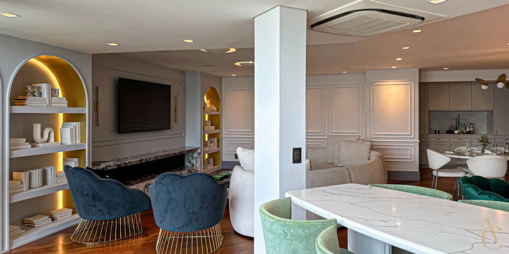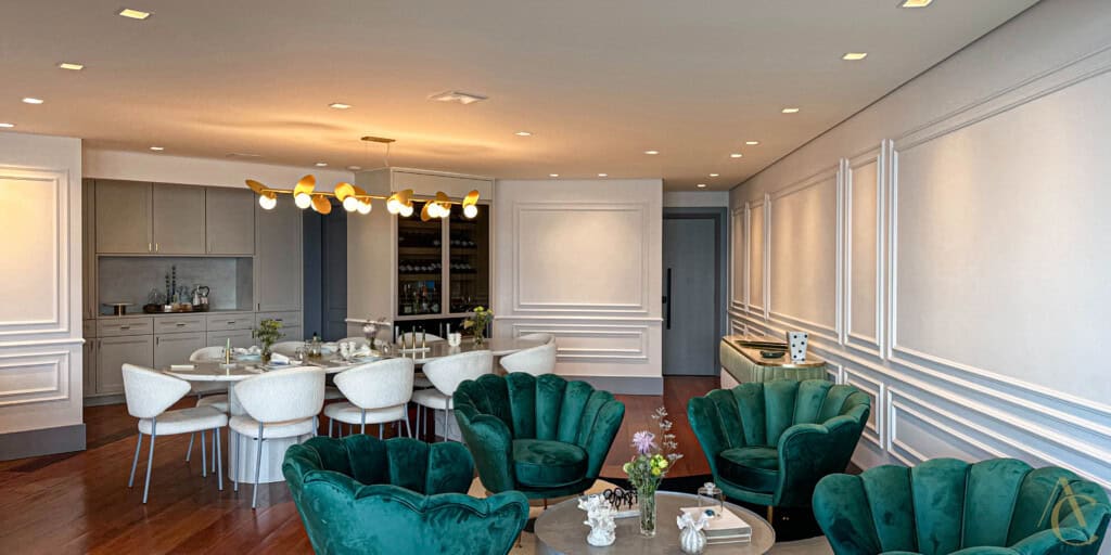 – Três ambientes de sala interligados, proporcionando amplitude e integração de espaços;