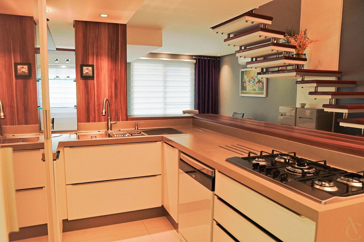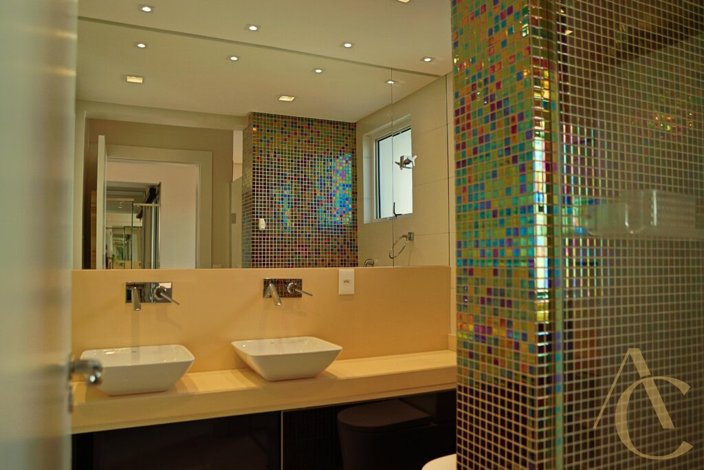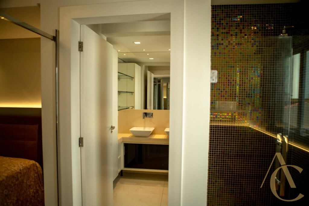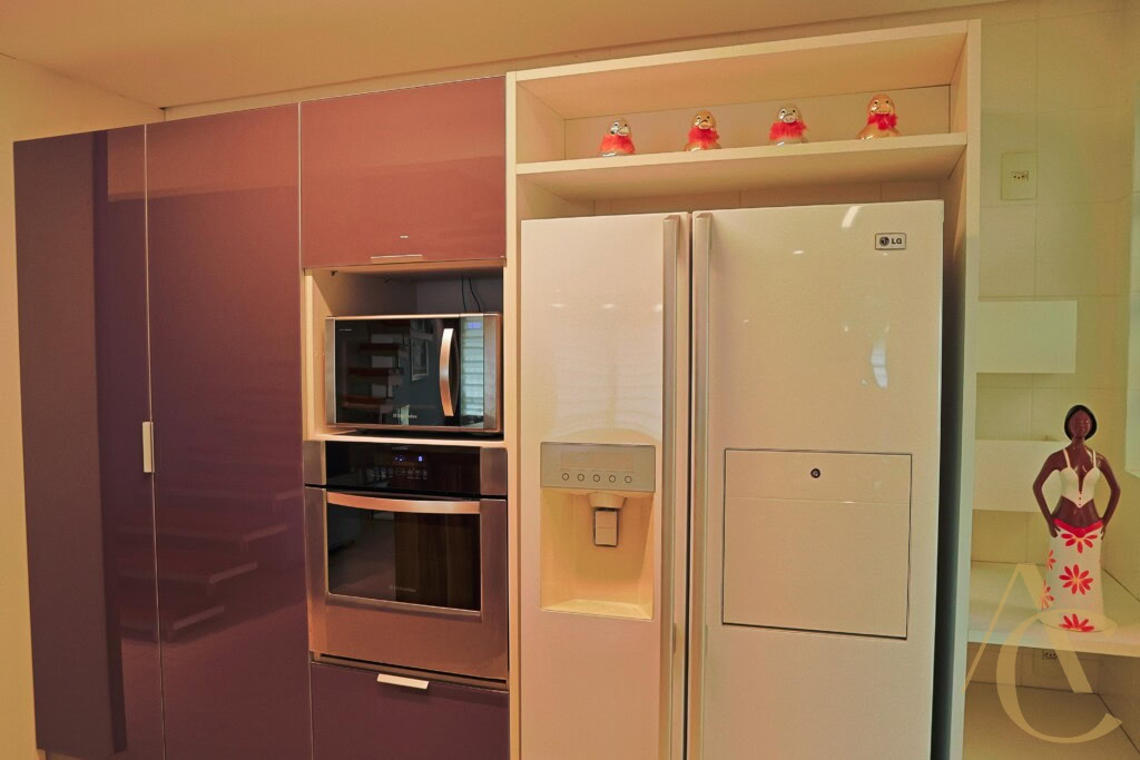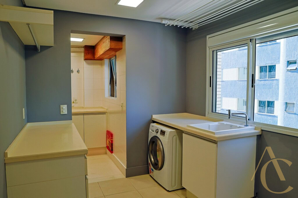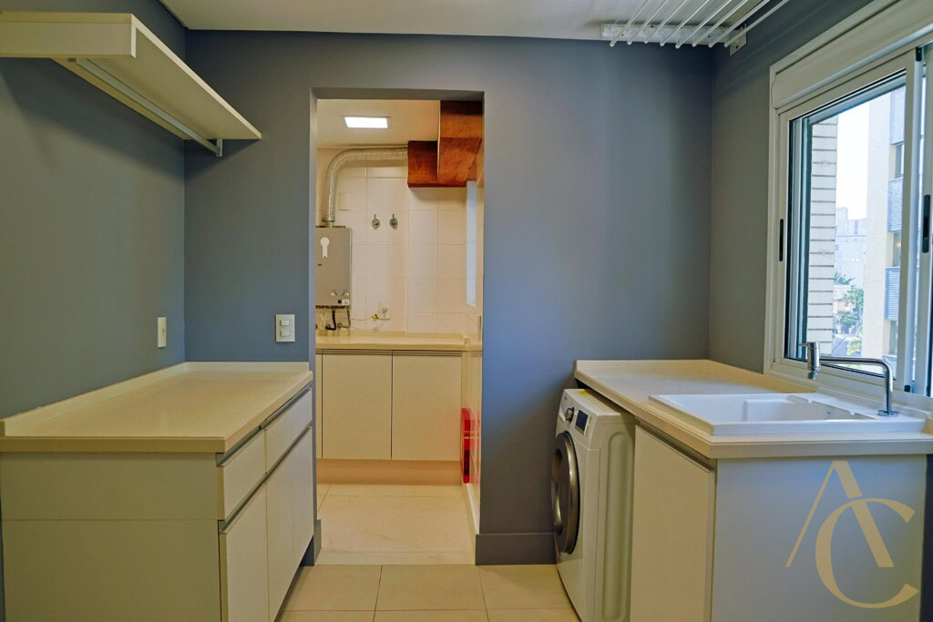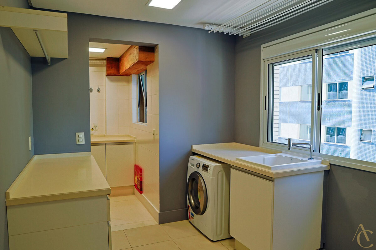 A cozinha possui móveis planejados de alta qualidade, otimizando cada espaço com praticidade e estilo. O imóvel conta ainda com dependência de empregada, área de serviço funcional e 4 banheiros bem distribuídos entre os ambientes.