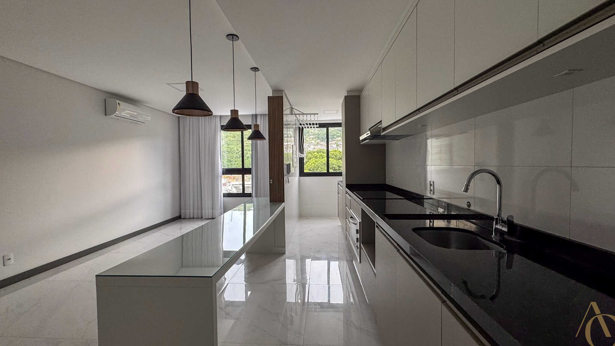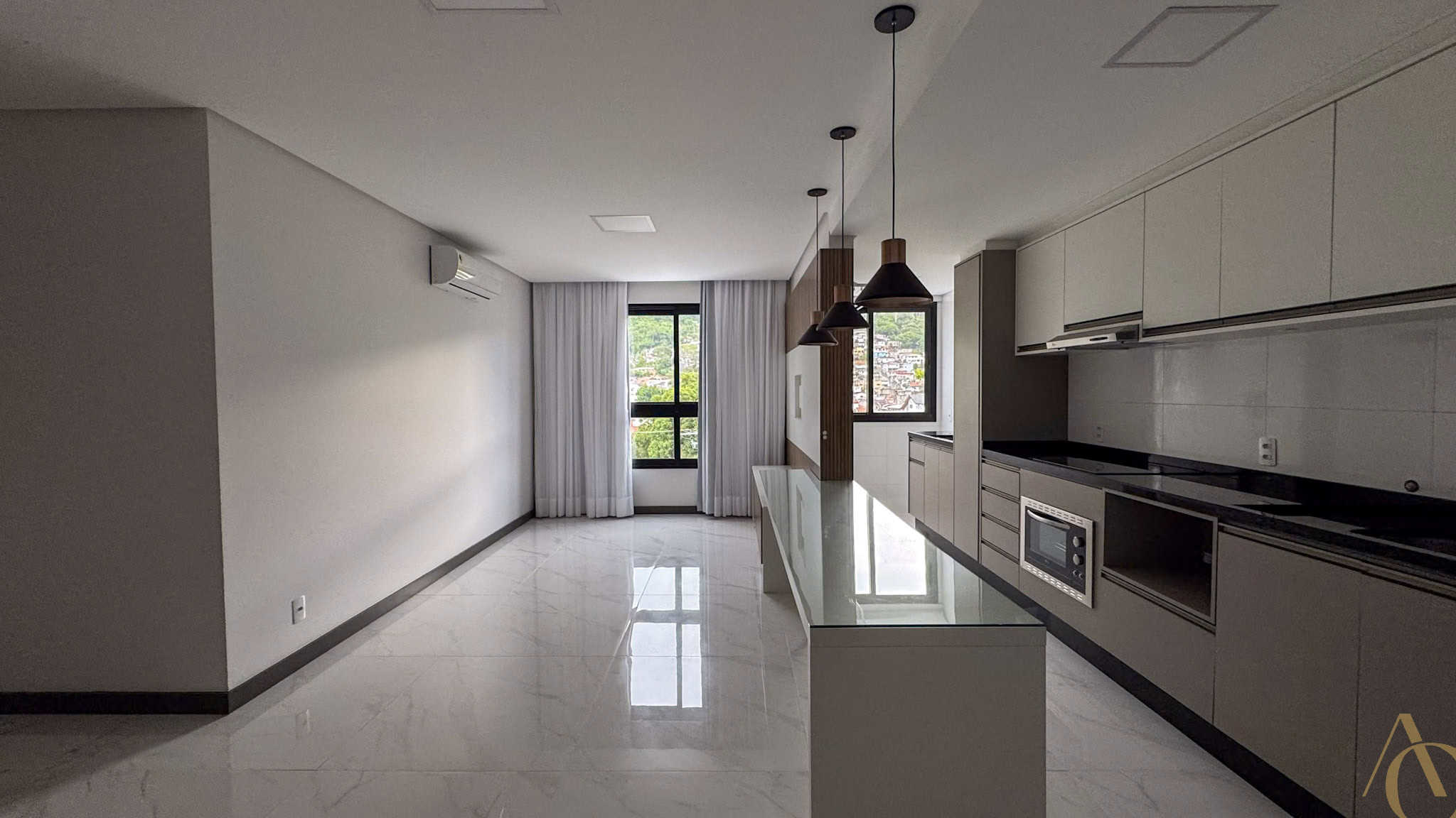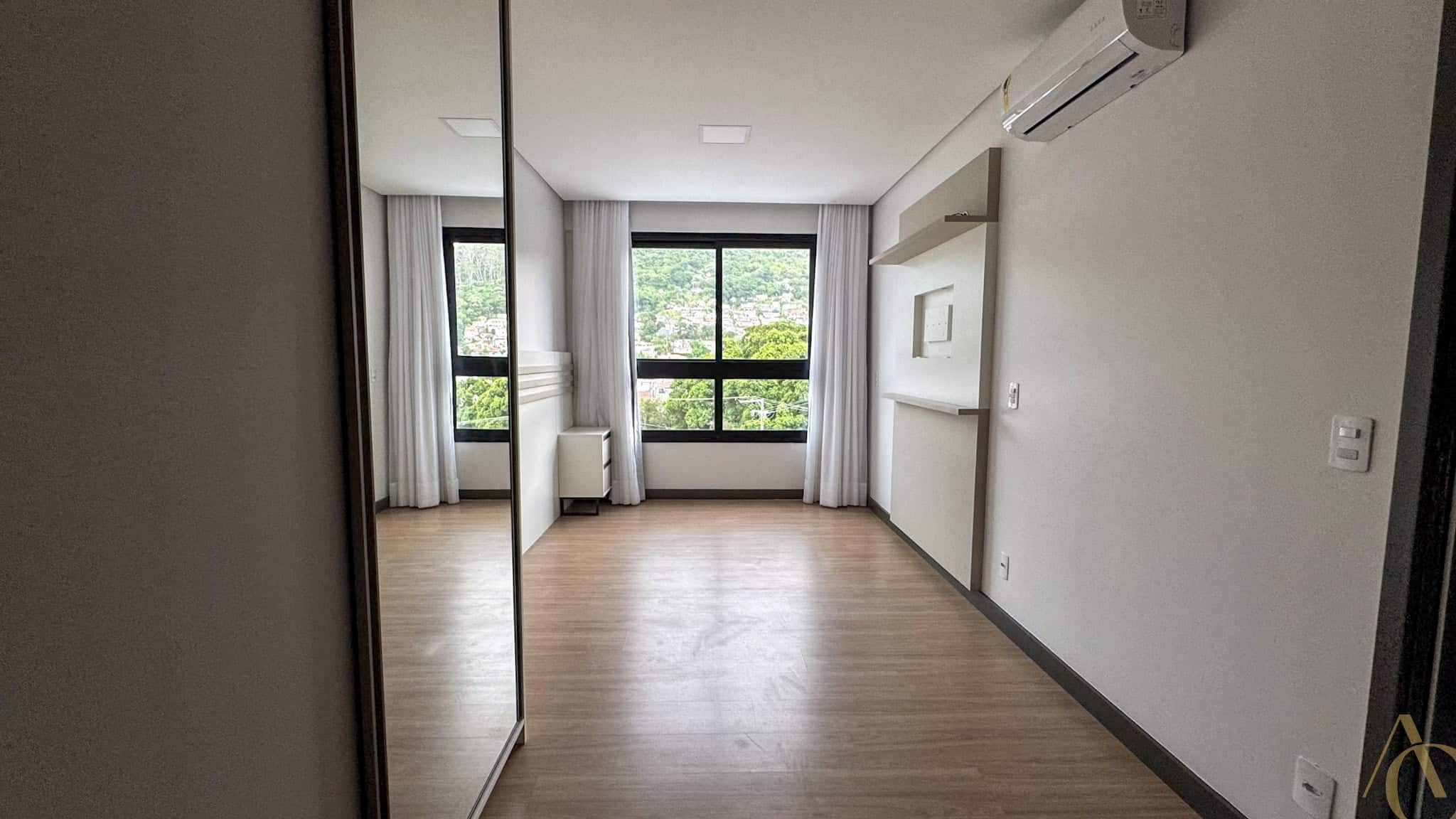 O imóvel apresenta piso em porcelanato em todos os ambientes, conferindo sofisticação, durabilidade e facilidade de manutenção. Dispõe ainda de luminárias instaladas e aparelhos de ar-condicionado, garantindo conforto térmico e iluminação adequada em todos os cômodos.