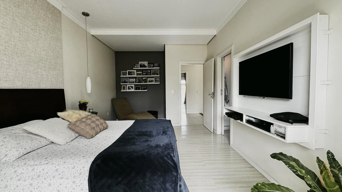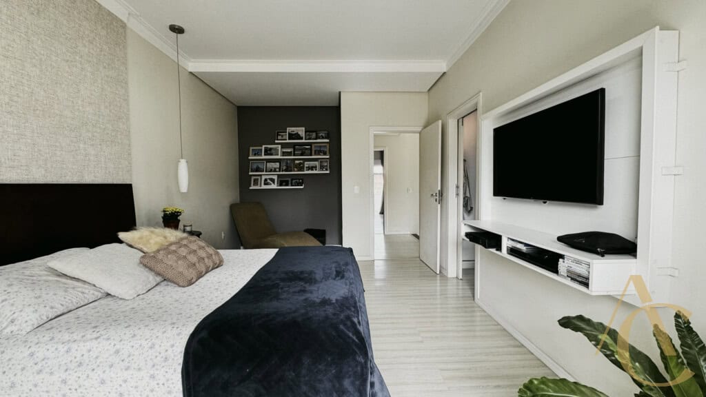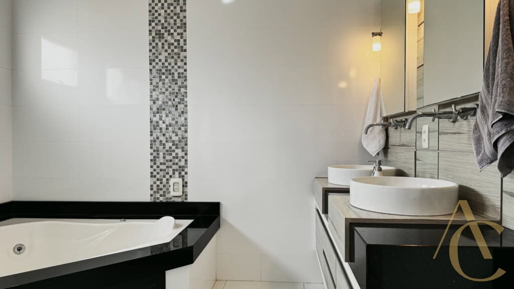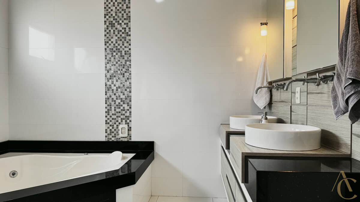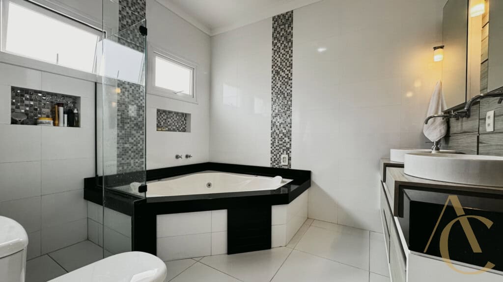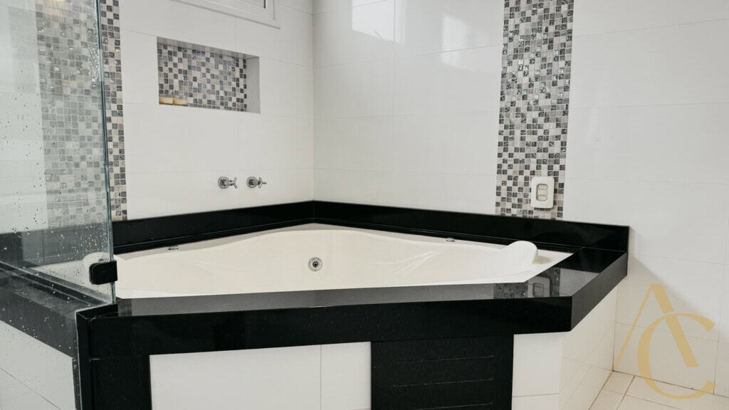 - 4 quartos sendo 3 suítes, incluindo suíte master com pia dupla, hidromassagem e closet