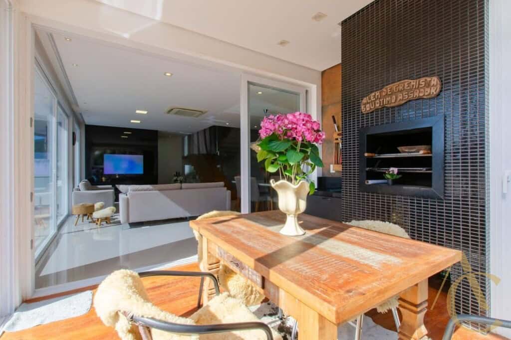 Na área externa, o destaque vai para a piscina privativa, cercada por um amplo quintal que convida ao lazer e à convivência. A churrasqueira complementa o espaço, ideal para momentos de descontração ao ar livre. A residência possui quatro vagas de garagem, oferecendo toda a comodidade que um imóvel de alto padrão exige. Todos os ambientes são mobiliados e decorados com muito bom gosto, prontos para receber seus novos moradores com conforto e sofisticação.