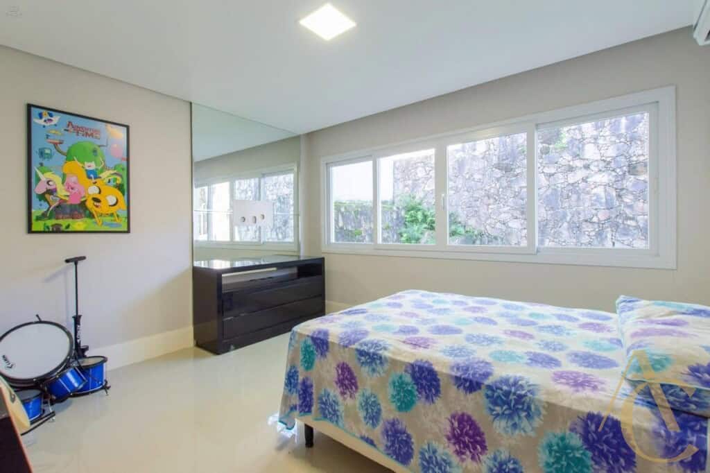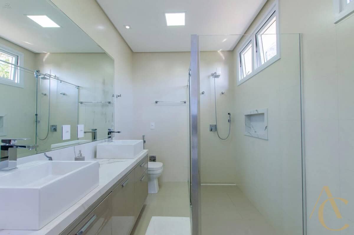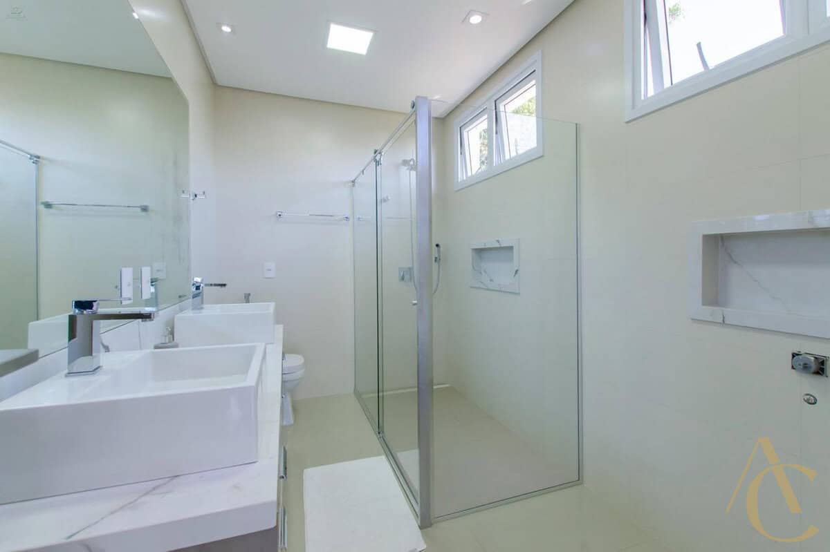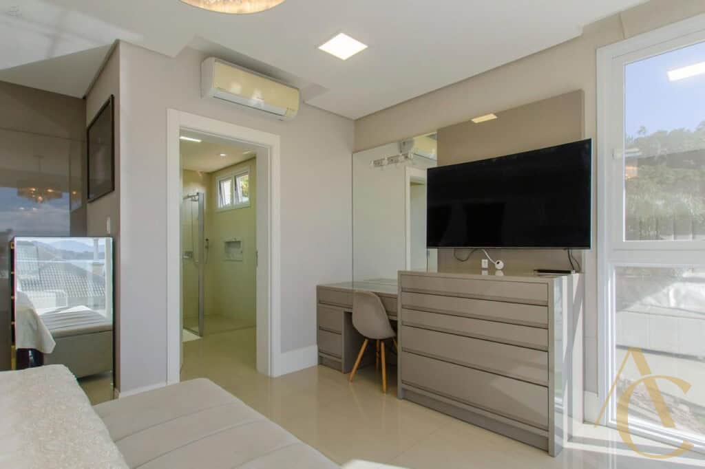 A casa conta com quatro suítes amplas, todas com excelente iluminação natural e climatização completa em ar-condicionado, garantindo conforto térmico em todas as estações. O living integrado, com acabamento em gesso e projeto luminotécnico, cria uma atmosfera sofisticada e acolhedora, perfeita para receber amigos e familiares. A cozinha planejada alia funcionalidade e elegância, totalmente equipada para atender às mais altas exigências do dia a dia.