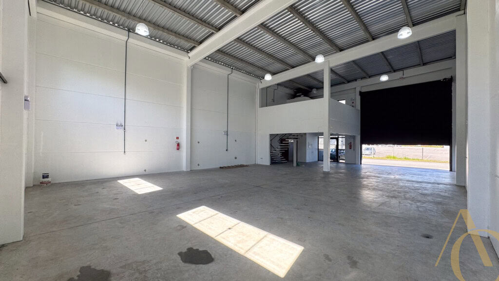 Galpão no loteamento Nova São José, em Sertão do Maruim. O imóvel conta com mezanino, dois banheiros e vagas de estacionamento em frente, oferecendo infraestrutura completa para o seu negócio.
