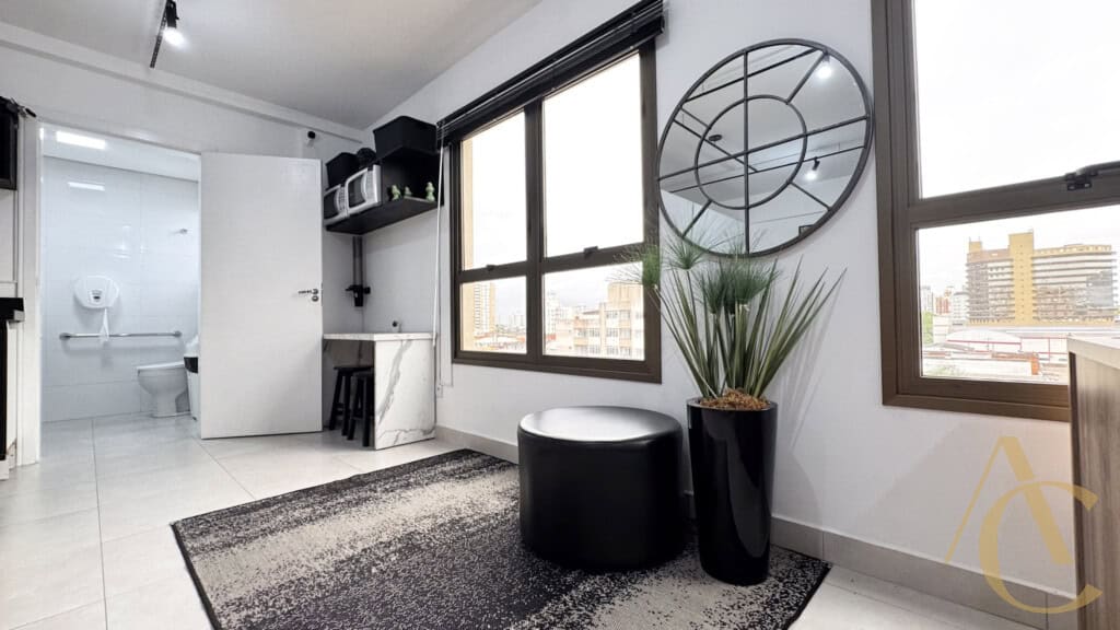O imóvel possui 38,36m² de área privativa, distribuídos de forma funcional e moderna. Conta com copa, banheiro privativo, armários planejados e está situado no 3º andar, proporcionando um ambiente agradável e bem iluminado.