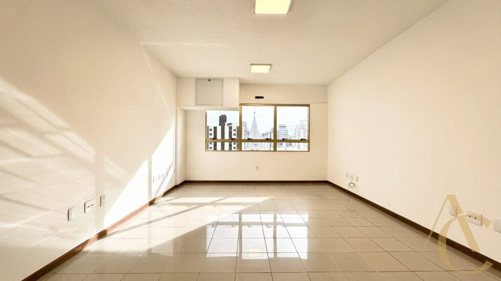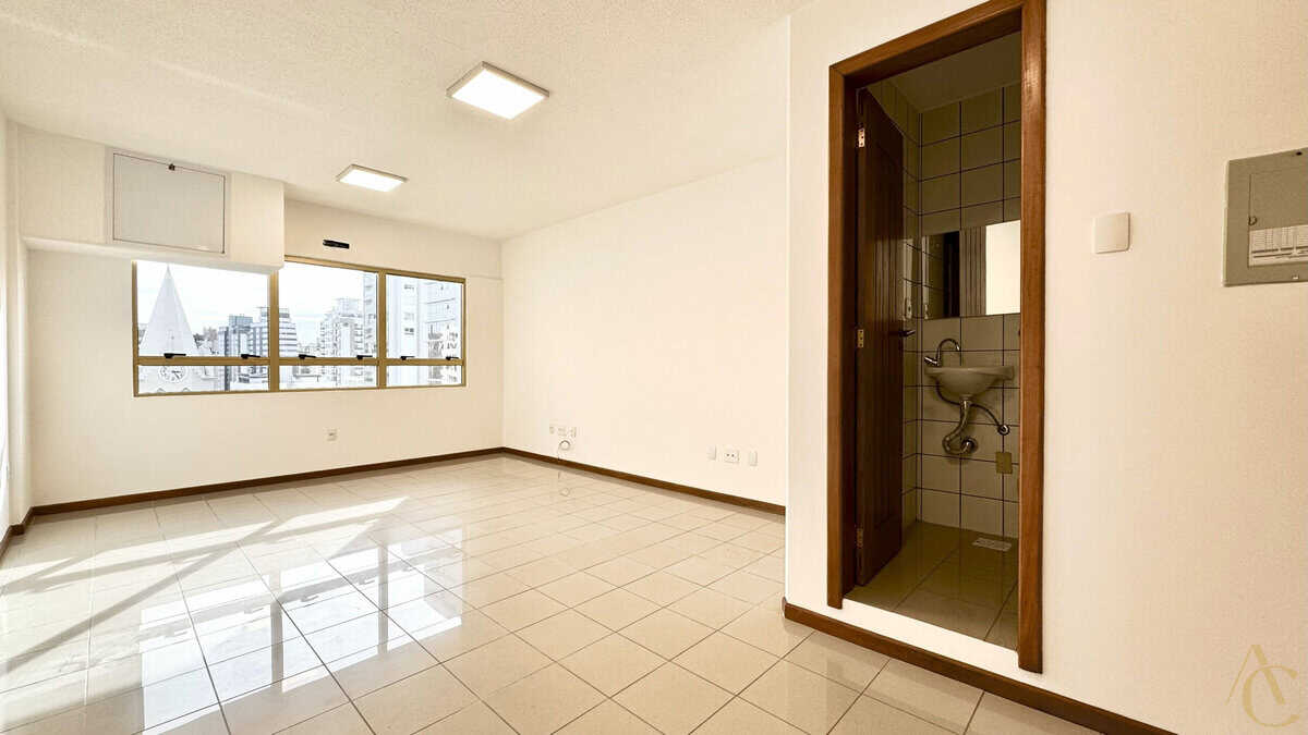 O espaço conta com piso em porcelanato, 1 banheiro e ótima iluminação natural — ideal para escritórios, consultórios ou pequenos negócios.